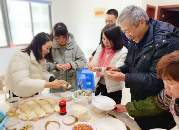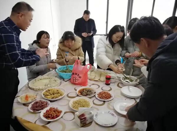 会后,王俊总经理带来了交大实验室师生创作的对联,将中超和航宇精铸巧妙的融入联中。上联“ 中华复兴航发梦圆精益求精 ”,下联“超英赶美宇内唯我辉煌永铸 ”横批“同心筑梦”, 全体参会人员贴对联,挂灯笼,一起动手包饺子聚餐,喜迎新一年的到来,共同期待中超航宇精铸更加美好的未来。